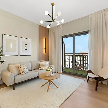 The Town Square Suite Luxury 2Br Near Qudra Lake includes a balcony, a living room, and a kitchen with air conditioning for utmost comfort. For added convenience, a hot tub are available at this accommodation.